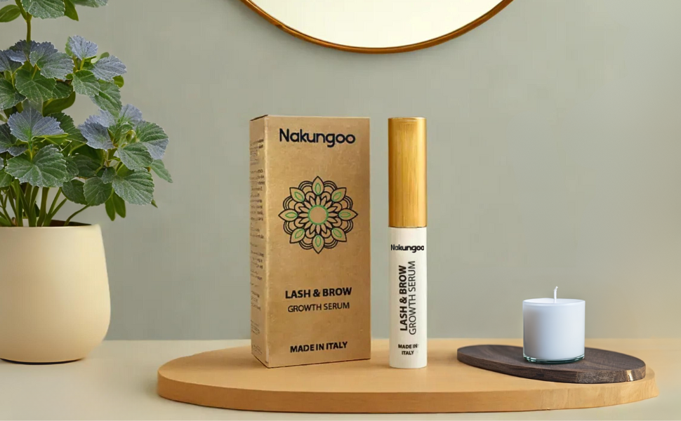 Fórmula Natural y Poderosa: Elaborado en Italia con extractos naturales como helicriso, té verde y ginseng, Nakungoo Lash & Brow Growth Serum fortalece, alarga y da volumen a las pestañas y cejas para una apariencia saludable y revitalizada.