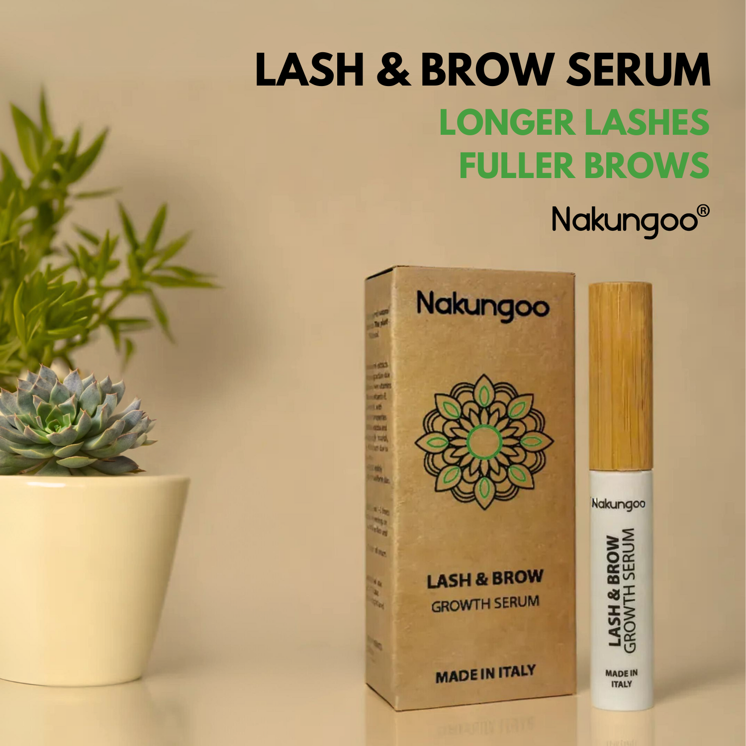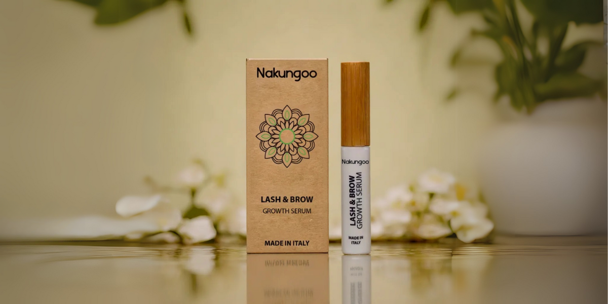 Nakungoo Lash & Brow Growth Serum lengthens, thickens, and strengthens lashes and brows with a natural, vegan, and gentle formula.