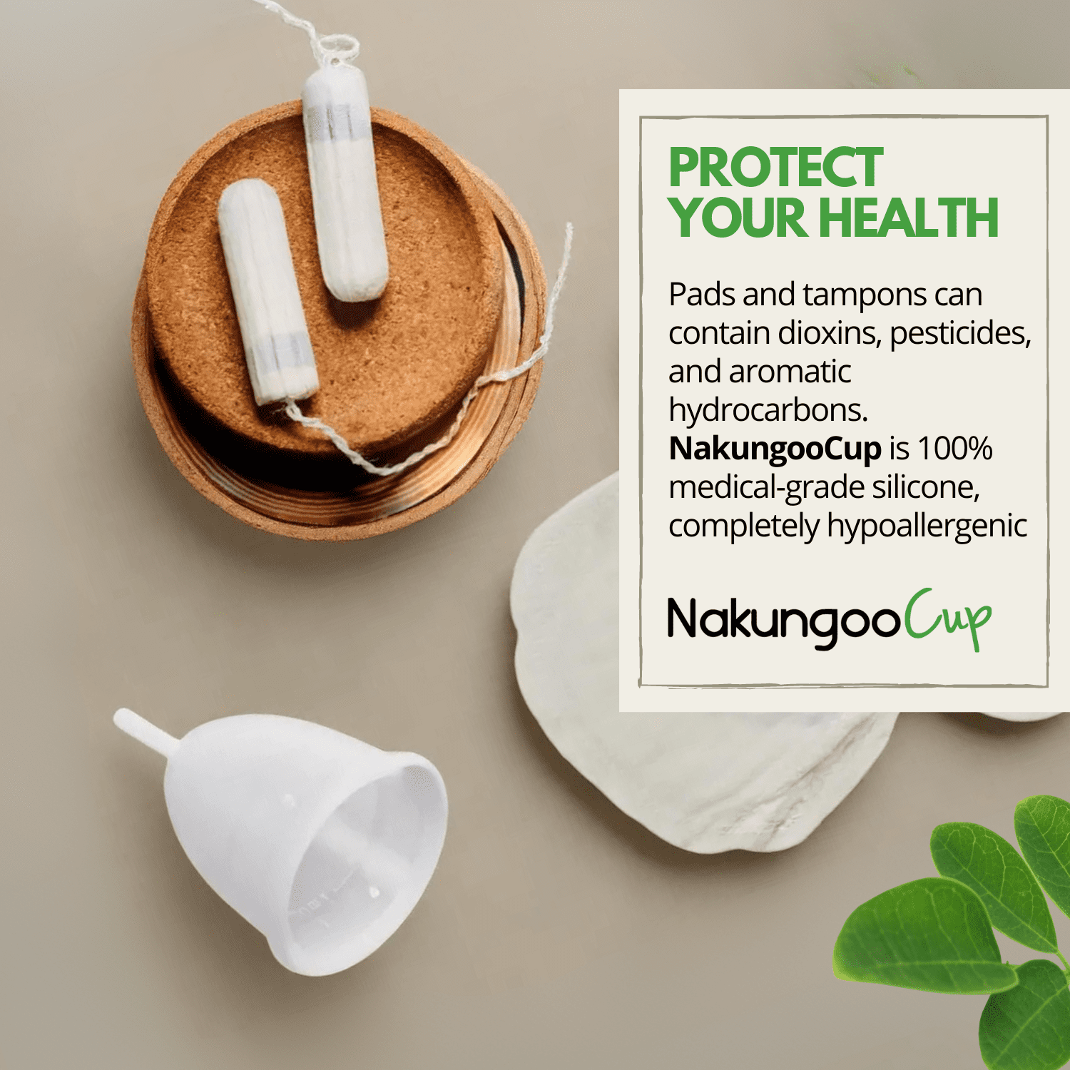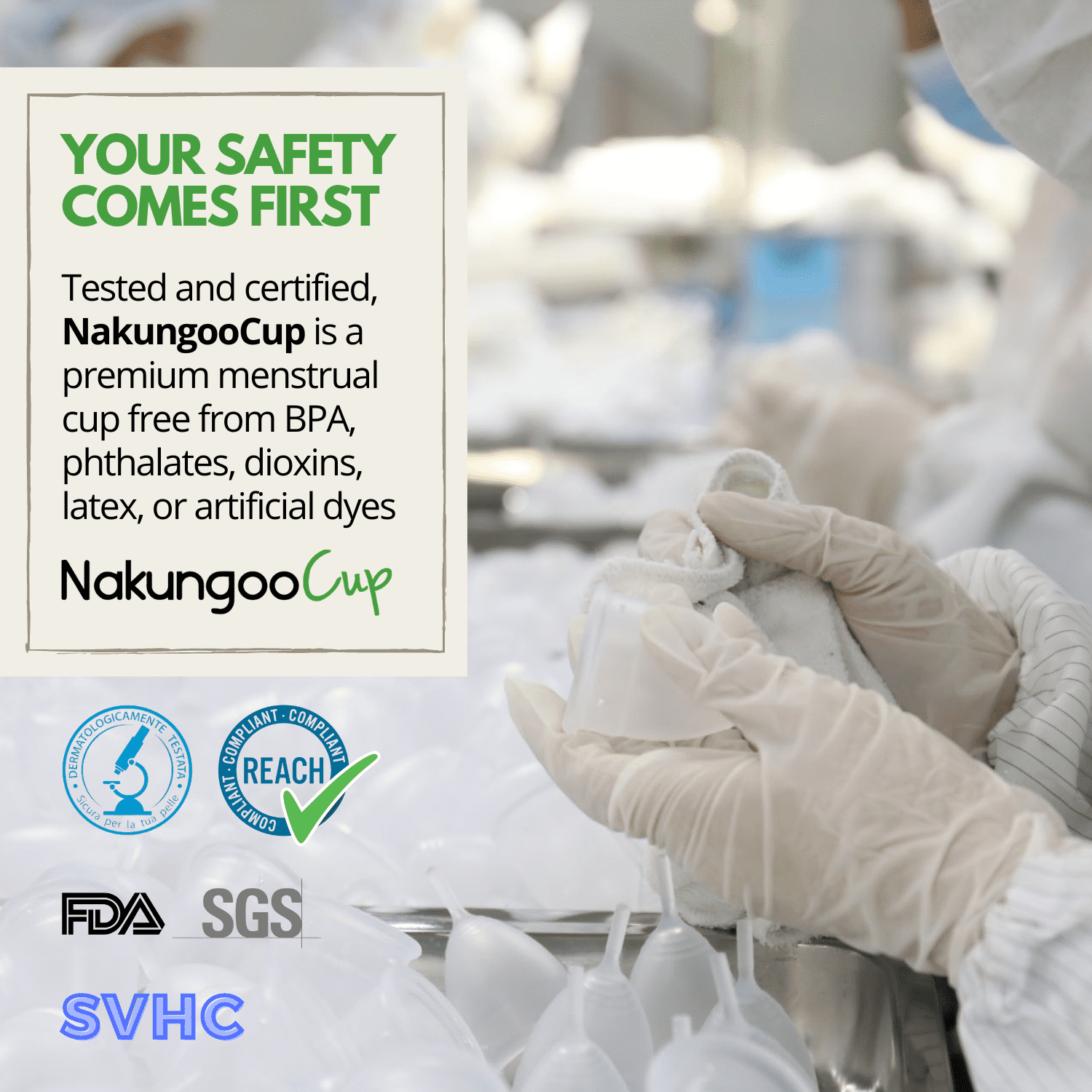 NakungooCup is a superior menstrual cup offering safety and comfort: 100% medical-grade silicone, FDA approved, SGS certified, hypoallergenic, and free of BPA, latex, toxins, dioxins, and artificial dyes. It’s the ideal choice for reliable protection without compromise.